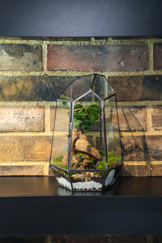 Геометричен висок терариум с Фикус Жен-Шен