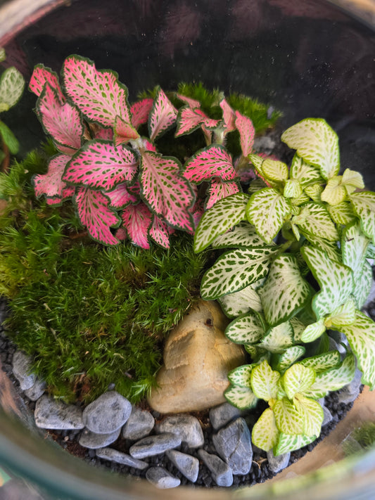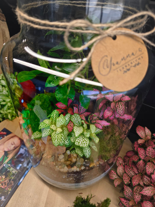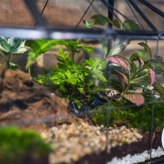 Просто поставете терариума на светло място в къщата, може би близо до прозорец, далеч от радиатори и пряка слънчева светлина. Прилагането на вода ще се извършва чрез пулверизиране, но няма да е необходимо, освен приблизително веднъж месечно или на два месеца, ако видите че не създава конденз и необходимата влага! Много е важно да не се преполиват растенията.