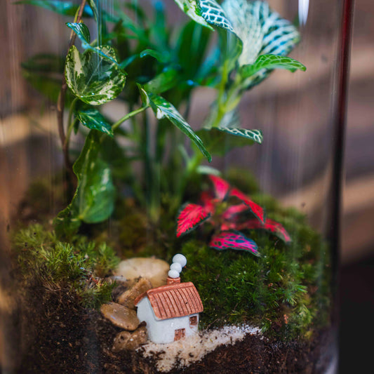 Истински миниатюрни екосистеми. Те изискват много малко грижи, пестят вода и време и имат способността да обогатяват и оцветяват интериорните пространства. В затворени терариуми (обикновено с тапа или херметически затворени) се подреждат слоеве от експандирана глина или едър чакъл, фин чакъл, активен въглен, пръст, различни растения и декоративни камъчета.